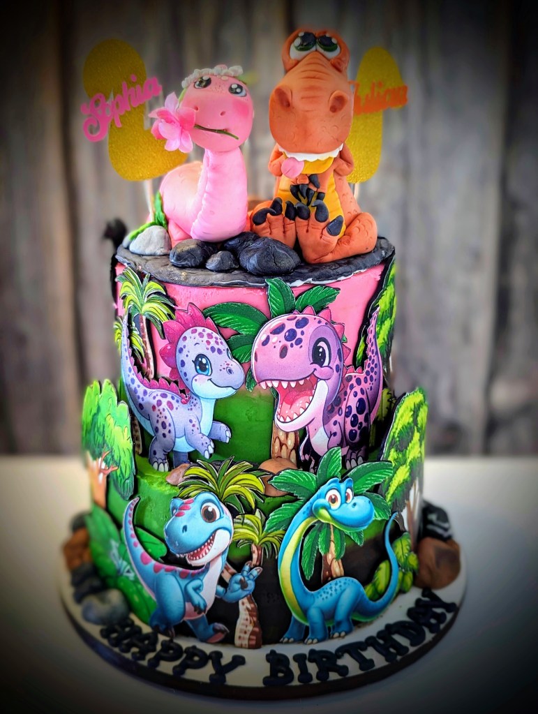 Even though each dinosaur didn’t weigh a lot by themselves. I used a cake plate covered in fondant and cake dowels underneath to help support the weight of everything combined. I then cut the numbers out using my Cricut machine. This is a great example of how fondant can help you stand out above your competitors.