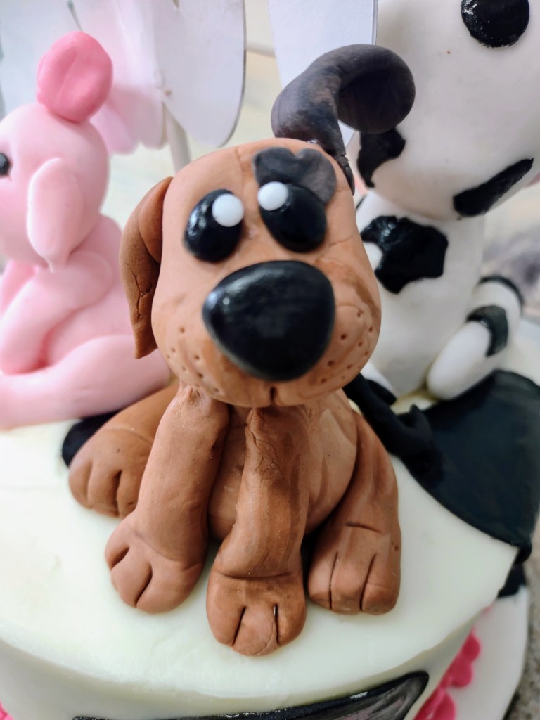Larger figurines are hard to support, like my Mickey Mouse above. I had to insert a dowel through the base of the cake to prevent sinking. As well as additional support to attach the arms and head. I didn’t know a rice krispie treat recipe could be sculpted then used as a lighter base at the time. Now, when a larger character is needed, that medium is my go to. Once sculpted, I let dry overnight to get hard. Once its dry, i use this zester to smooth out any lumps and bumps from the rice krispies. I then cover it in modeling chocolate and not fondant. Modeling chocolate doesn’t dry as quickly as fondant. Allowing it to be manipulate it more easily. Like the cow’s head and bass pictured below. But, I’ll dive into that on future posts.